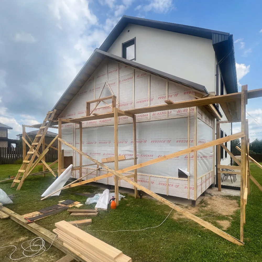 Пристройка 45 м2Замена кровлиОтделка фасада сайдингом