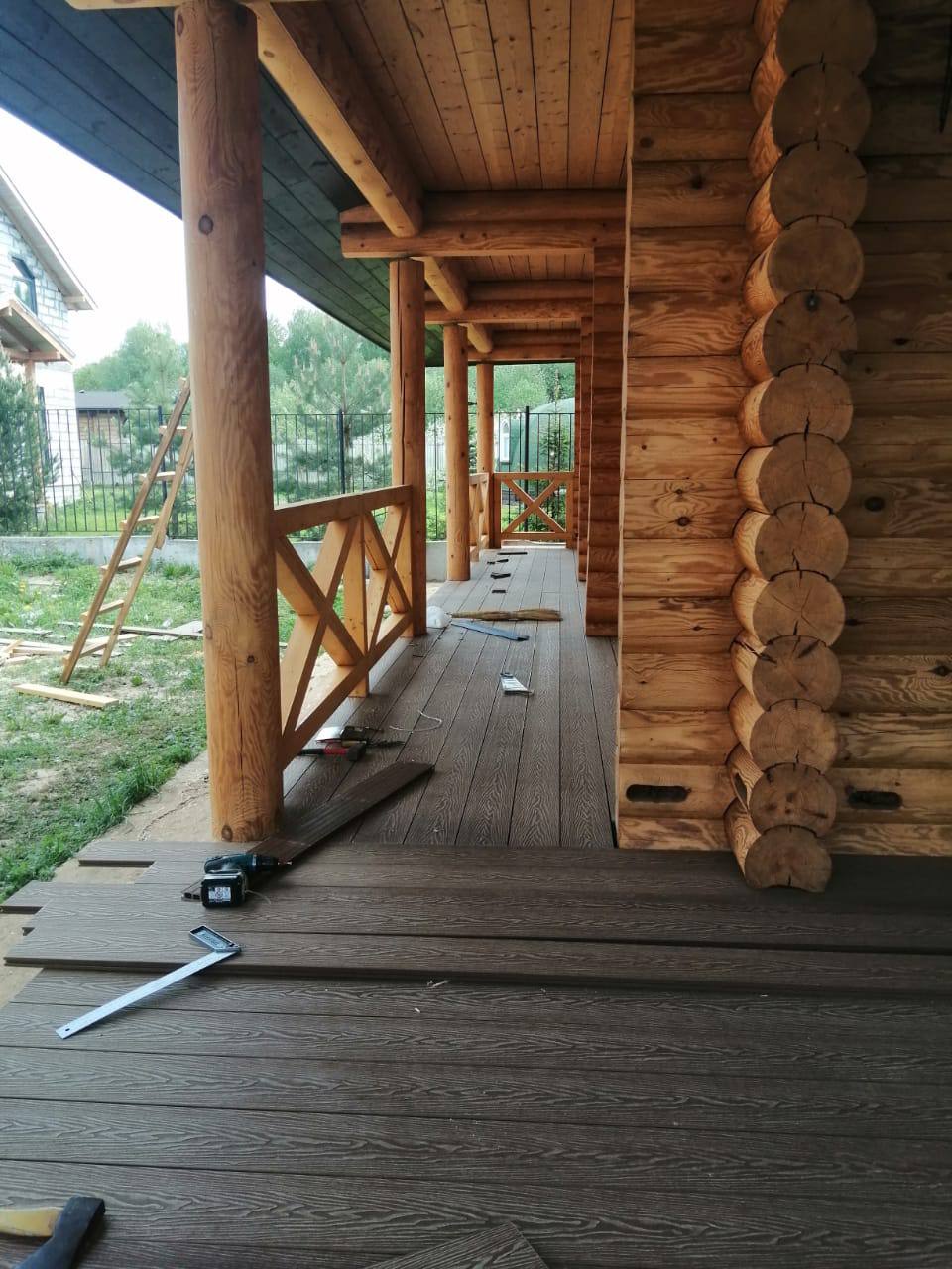 Расширение и достройка террасы к готовому дому из бревна